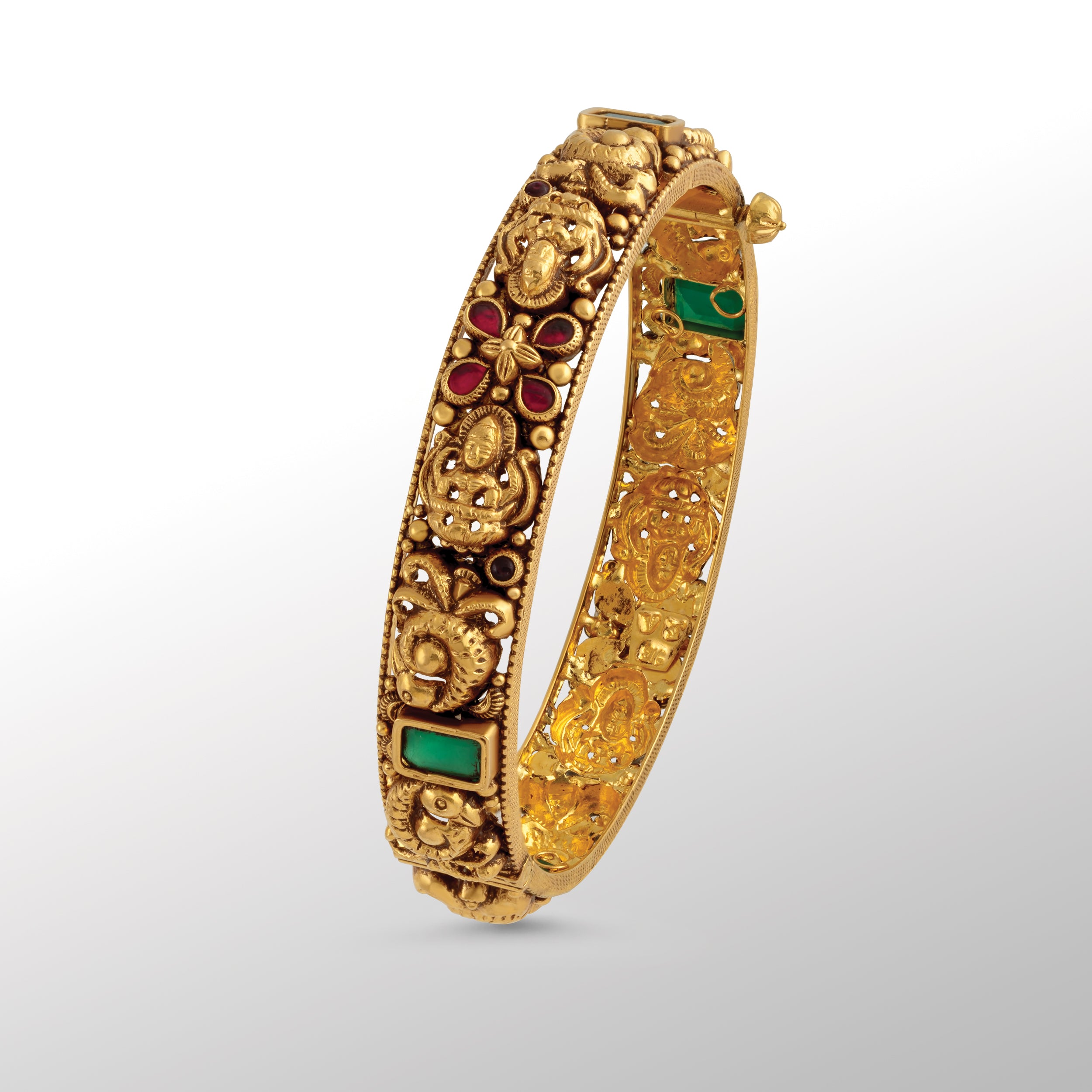 The Ananta Temple bangle from Meralda Jewels captures the spirit of eternity in every detail. Inspired by sacred temple artistry, its ornate craftsmanship reflects both devotion and grandeur, making it a true embodiment of cultural heritage. With its graceful curves and intricate motifs, the bangle carries the timeless charm of tradition while resonating with modern elegance—perfect for adorning life’s most cherished celebrations.