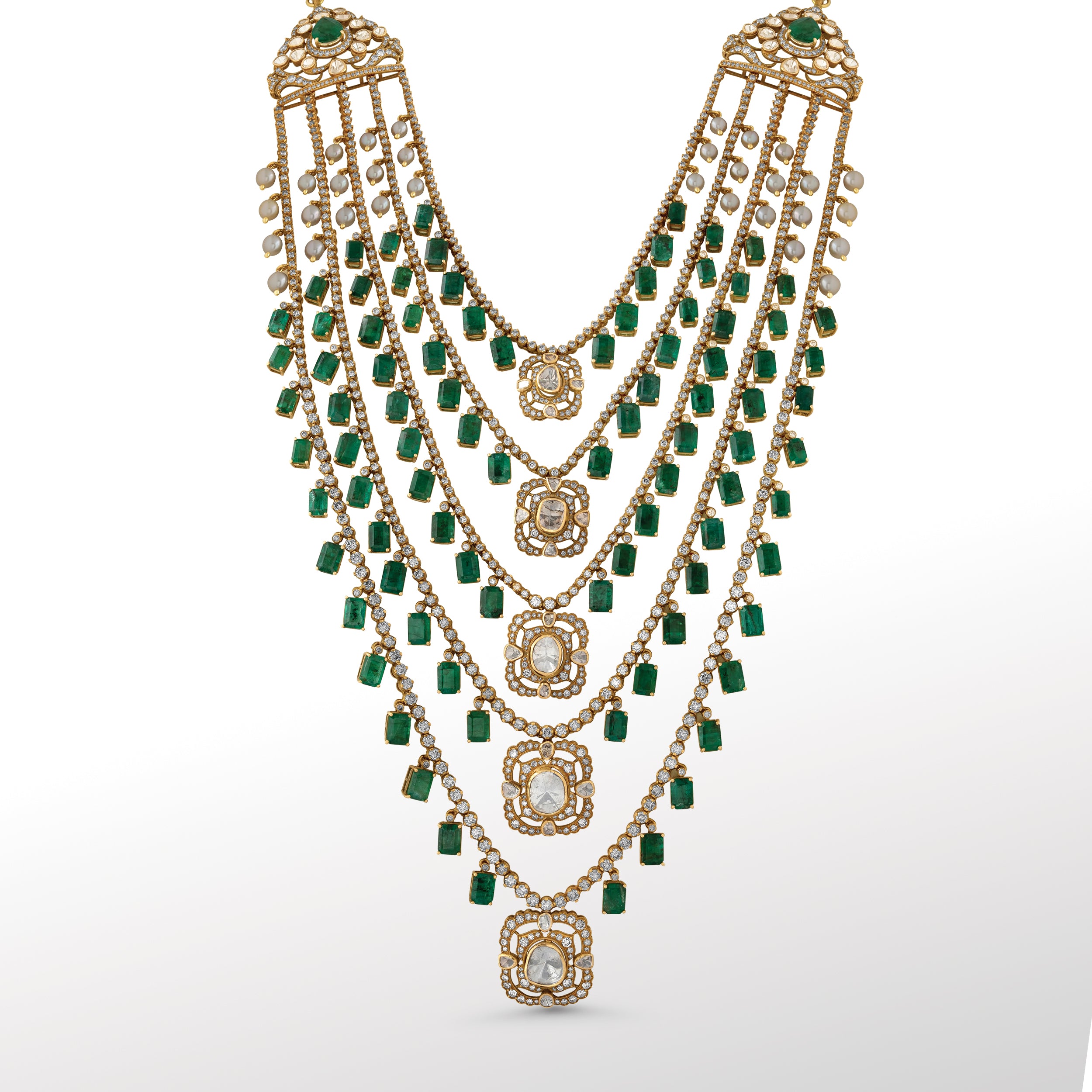 Roohani Polki Necklace – A true symbol of heritage and grandeur, this necklace is crafted with uncut Polki diamonds that exude timeless brilliance.